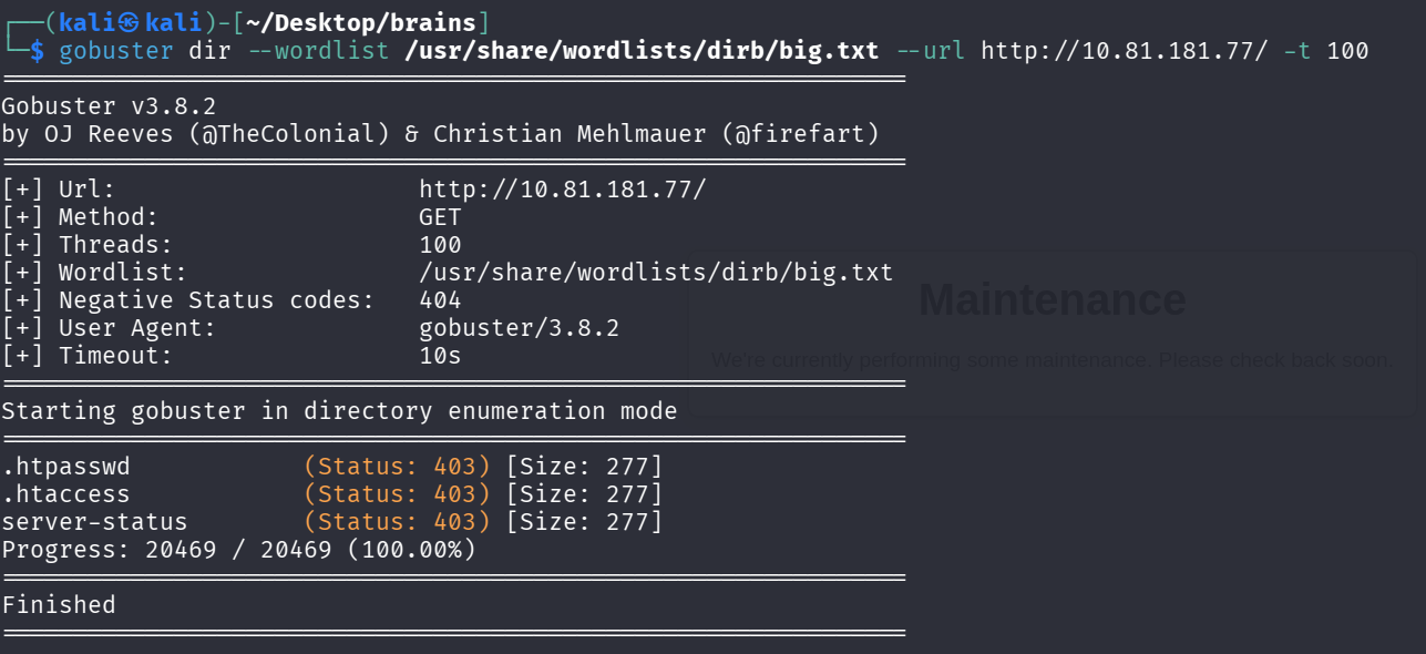 gobuster dir --wordlist /usr/share/wordlists/dirb/big.txt --url http://10.81.181.77/ -t 100Yine istediğimiz bilgiye erişemiyoruz.