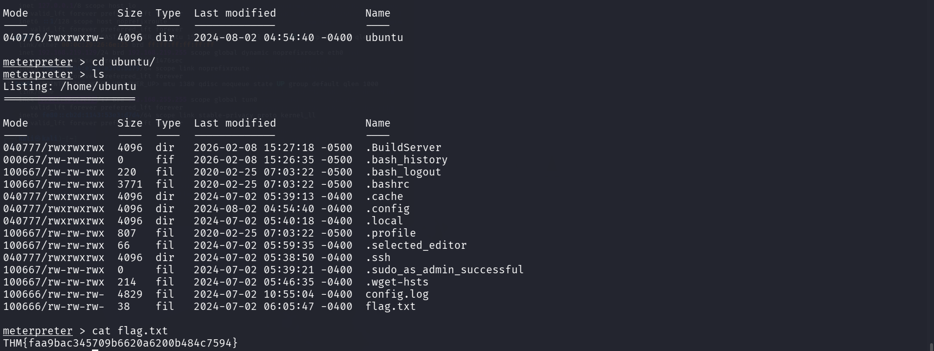Burada doğrudan home dizinine geçtiğimde, flag.txt dosyasını elde etmiş oluyorum.